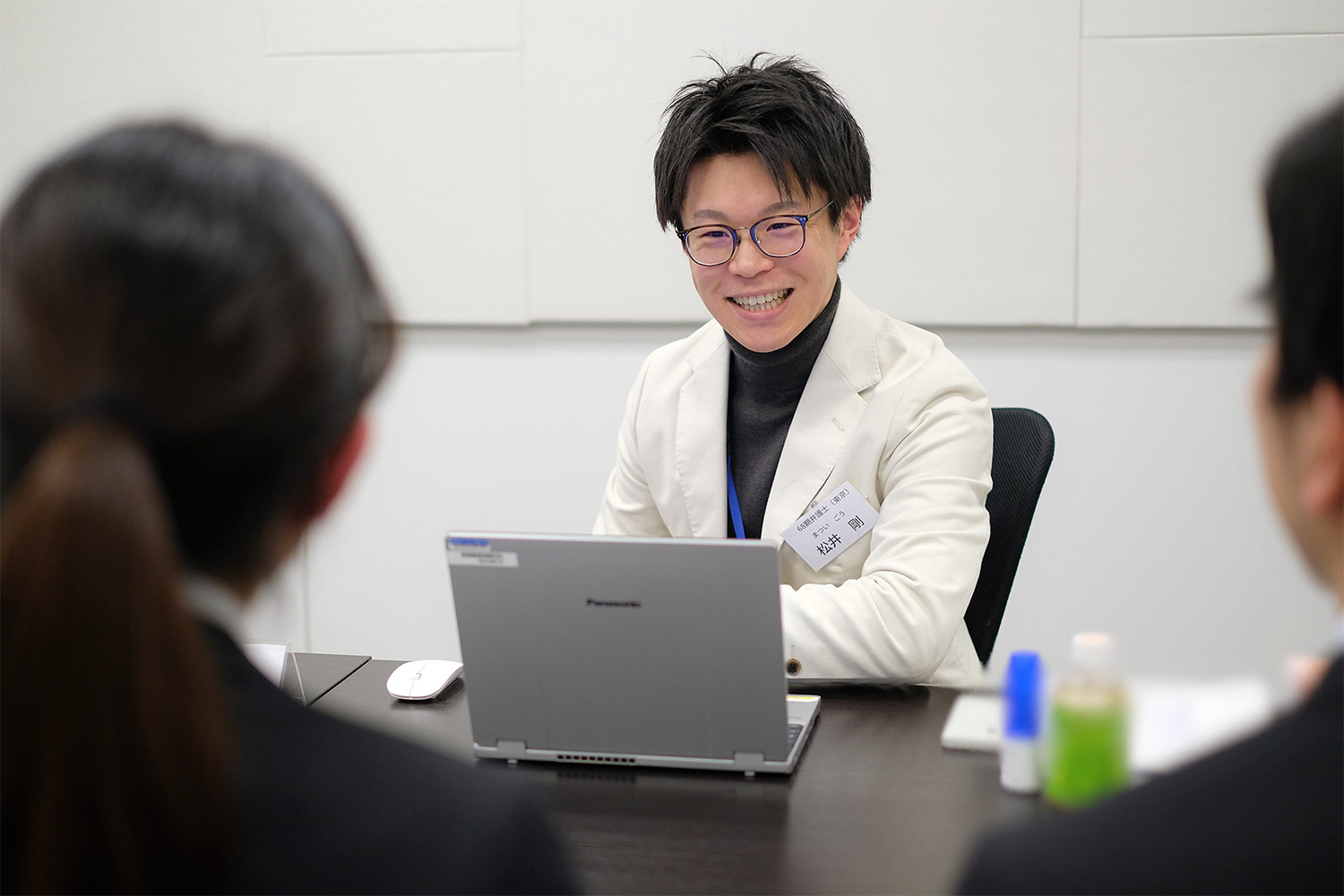 松井剛弁護士からは、若手弁護士が当事務所で研鑽を積むメリットとして、「実務経験の初期段階から多様な法律分野に携わる機会が得られること」と、「パラリーガルとの協働により、案件対応の質と量の双方を実現できること」が伝えられました。